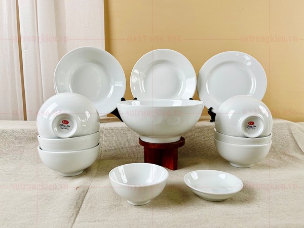 Bát đĩa Trung Kiên được ưa chuộng nhờ men sứ trắng mịn, bền chắc, chống va đập và an toàn cho sức khỏe, phù hợp cho cả gia đình và nhà hàng, khách sạn cao cấp.